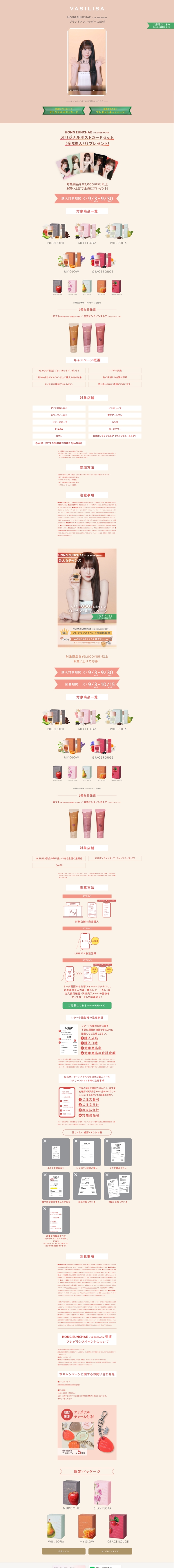 フレグランスイベントの特別観覧席も魅力的だが、1,000名に当たるオリジナルチャームのほうが、より当選期待を感じやすい設計になっている。こうした限定アイテムは既存ファンのロイヤリティを高める効果が大きく、囲い込み施策として非常に有効である。