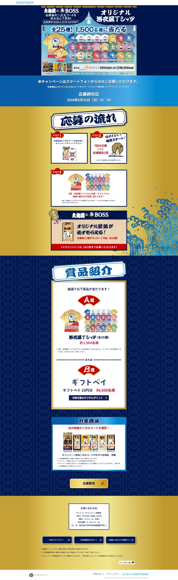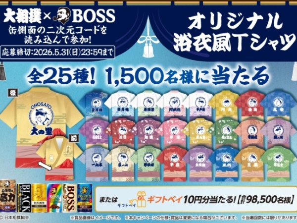 大相撲×BOSS オリジナル浴衣風Tシャツ全25種!1,500名様に当たる