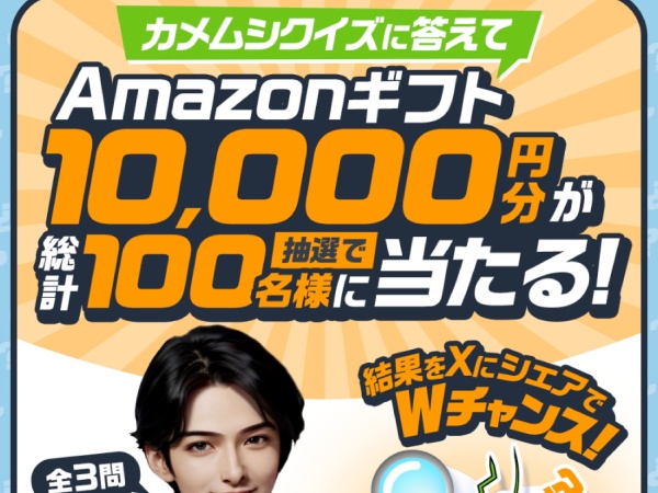 Amazonギフト券1万円×100名という高額かつ実用性の高い景品設定が魅力的である。当選人数も十分に確保されており、参加者に「当たるかも」と感じさせる期待値の高い設計となっている。