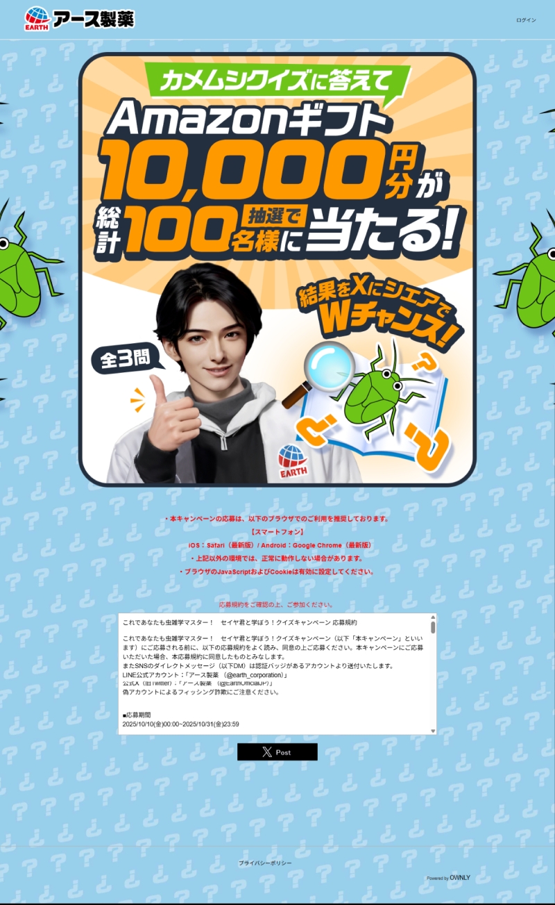 アース製薬これであなたも虫雑学マスター!セイヤ君と学ぼう!クイズキャンペーン