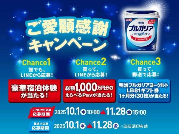 【豪華賞品が当たる3つのチャンス】明治ブルガリアヨーグルトご愛顧感謝キャンペーン